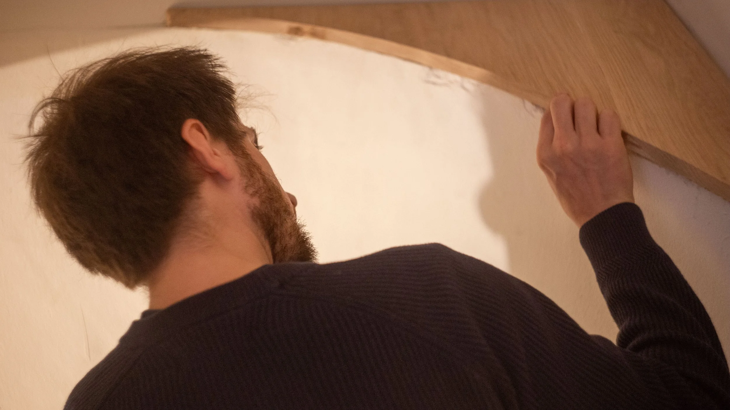 Werffoto van keuken uit eik in opbouw, wederom uit herbruikte parket. foto van afgewerkte keuken van fotograaf Bas volgt!